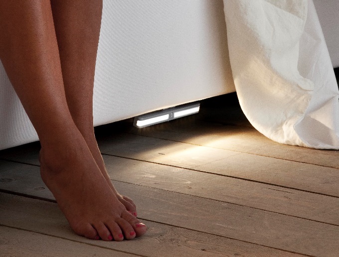 Wat zou het ideaal zijn als je in een donkere slaapkamer zonder stoten in en uit bed kunt stappen. Met deze in- en uitstapverlichting met ingebouwde bewegingssensor die eenvoudig aan beide ligkanten onder het bed bevestigd kan worden, zul je veel gemak en plezier beleven. De sensor is instelbaar waarmee je ook de duur van het licht kunt bepalen. De brandtijd is namelijk van 5 seconden tot 5 minuten in te stellen. De kleurstelling is alu-look.