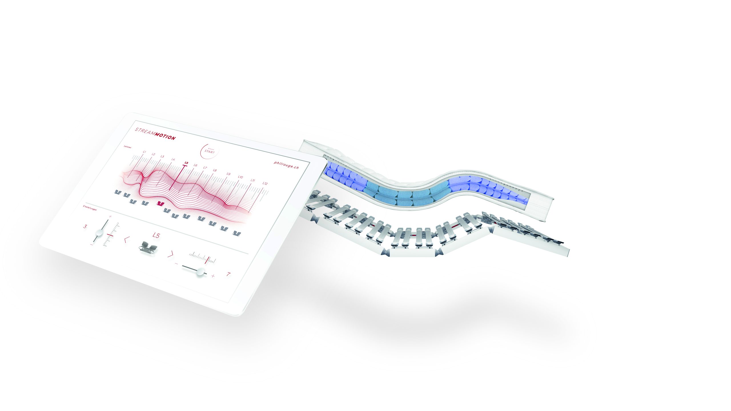 Ieder persoon is uniek en zeker ook wat betreft de lichaamsbouw. Is het dan niet fijn dat een bed systeem zich hierop aanpast? Het Philrouge stream veersysteem is het eerste en gepatenteerde bedbodem dat 100% instelbaar is naar jouw unieke lichaamsbouw.
