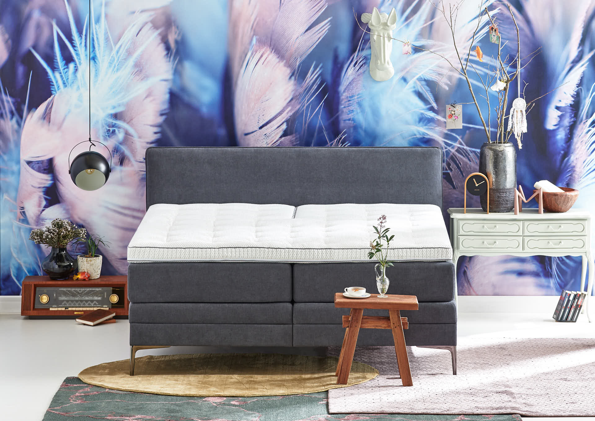 Maak je eigen elektrisch verstelbare Cinderella Boxspring Pure nog persoonlijker door deze geheel zelf samen te stellen. Maak een keuze uit de gewenste ligmaat, kleur potenset, vele stoffen/kleuren en de juiste comfortklasse qua hardheid van het matras en type splittopper.
